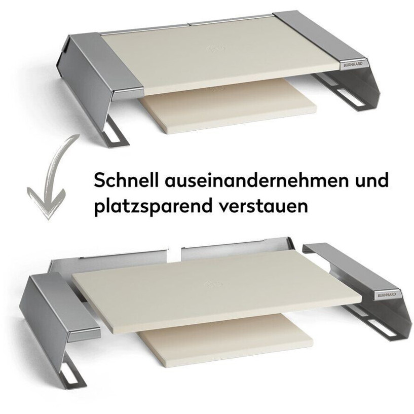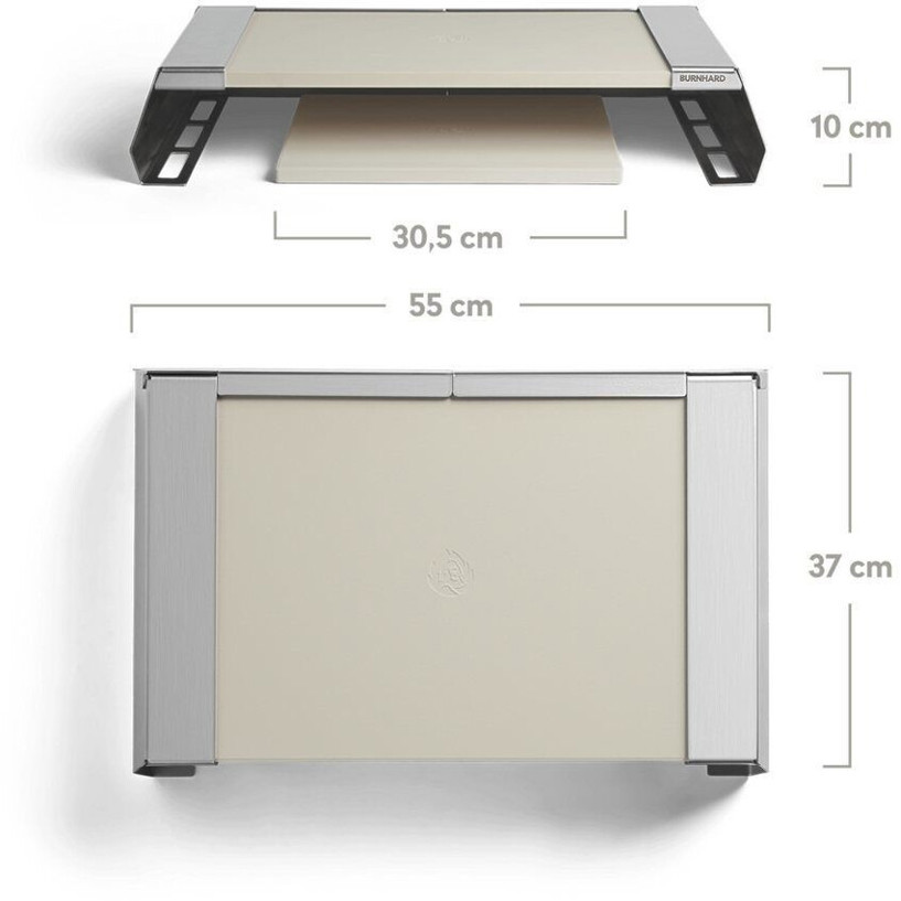 Mit einer Breite von 55 cm, einer Tiefe von 37 cm und einer Höhe von 10 cm ist der Pizzaaufsatz formschön gestaltet und passt optimal auf Grills der Modelle Burnhard EARL, Burnhard Big EARL, Burnhard FRED, Burnhard Big FRED und Burnhard Fat FRED. Darüber hinaus ist der Pizzastein spülmaschinengeeignet, was die Reinigung nach dem Grillen erheblich erleichtert.
