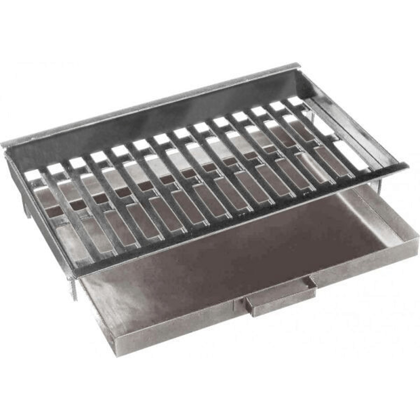 Die Lieferung umfasst die Aschepfanne aus Edelstahl, jedoch sind keine weiteren Teile oder Zubehör enthalten.