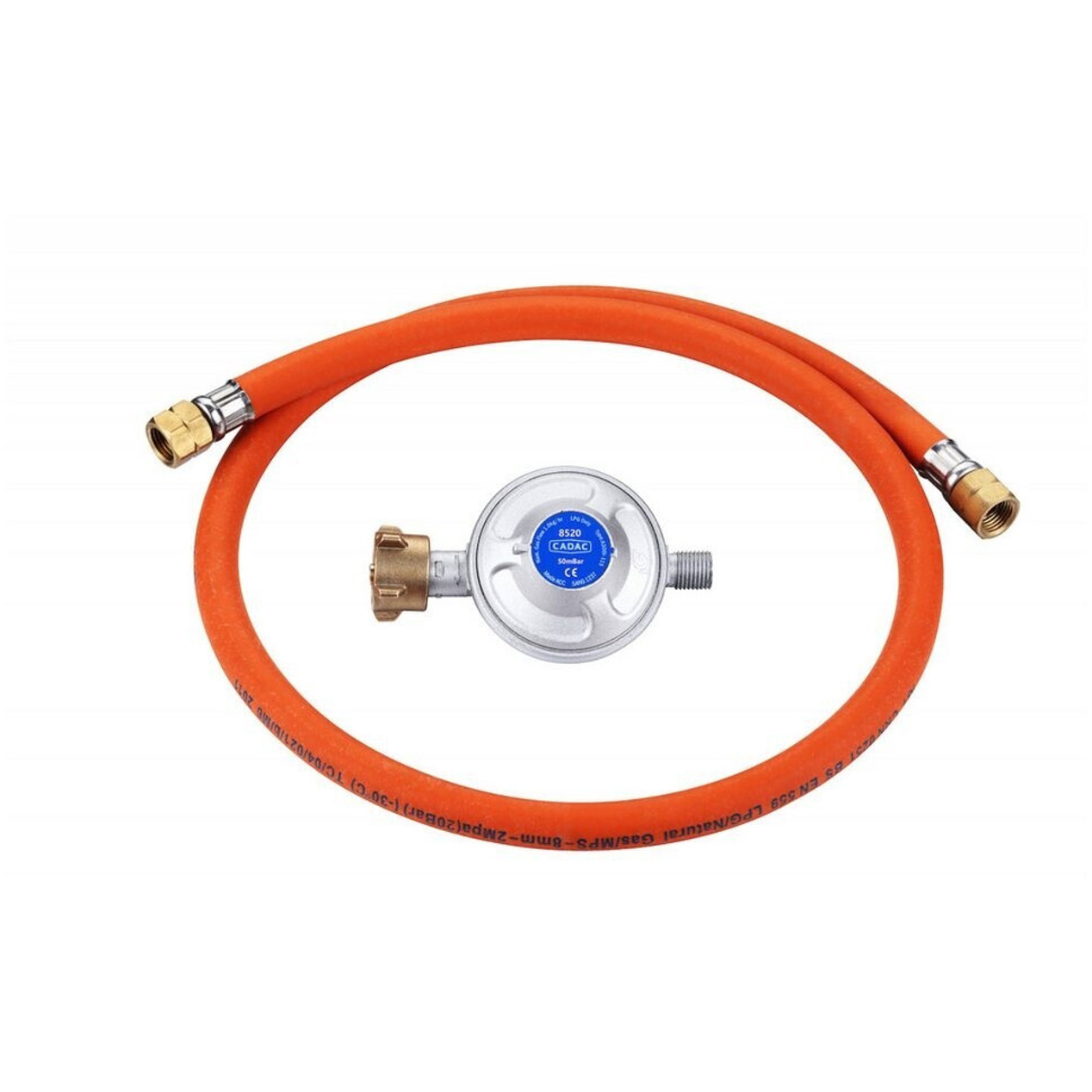 Im Set enthalten sind ein Gasdruckminderer und ein 80 cm langer Gasschlauch.